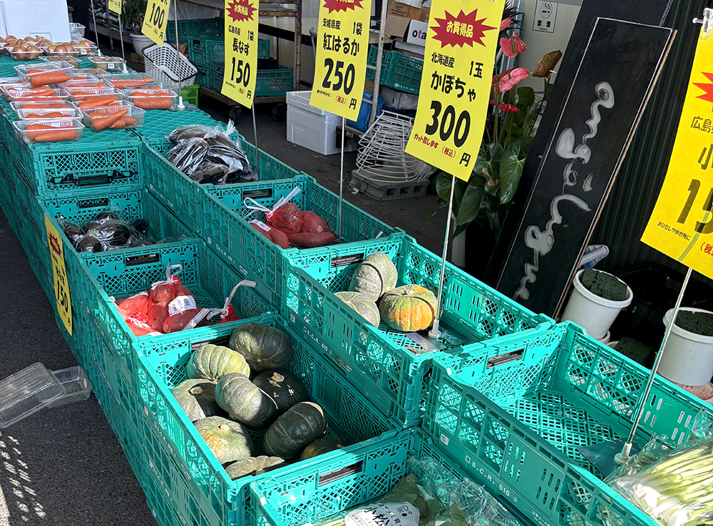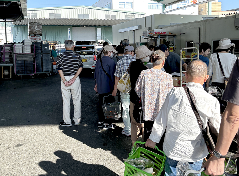 サイキでは毎週土曜日AM9:00~11:00の2時間で、市場直送の新鮮な野菜や果物をお安く販売しております。